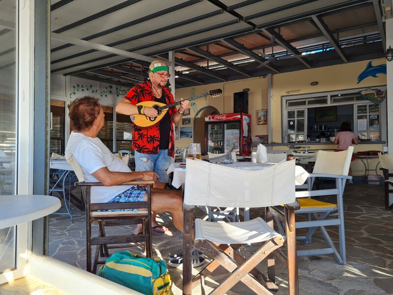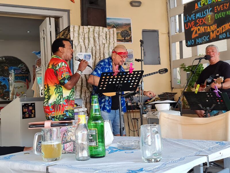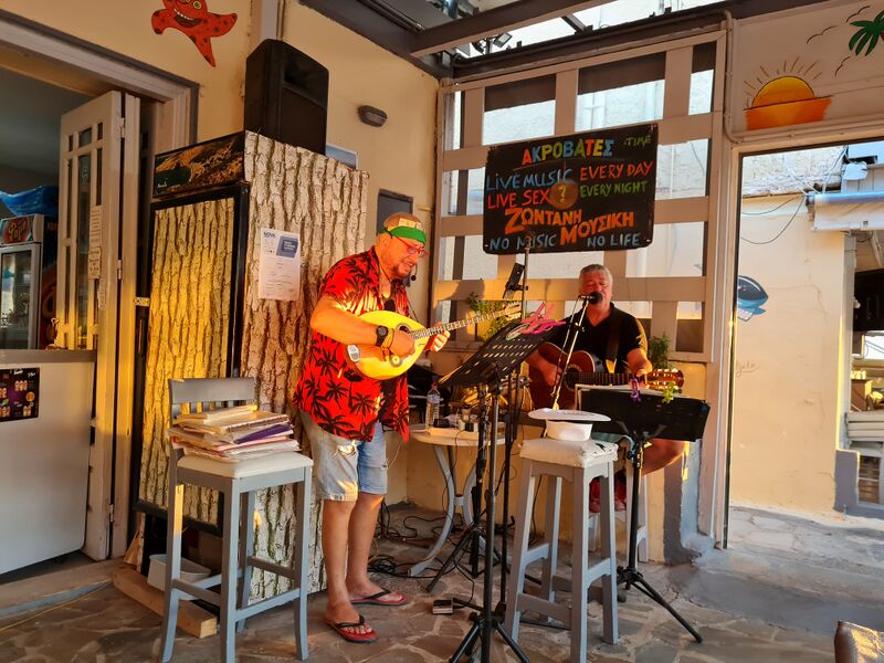 Unterhalb der Höhlen saß ich, als plötzlich Musik zu mir herüberklang. Neugierig folgte ich den Tönen – es war der letzte Tag meines Urlaubs, der sich schon dem Ende zuneigte. So entdeckte ich die AKPOBATES im Dolphin.