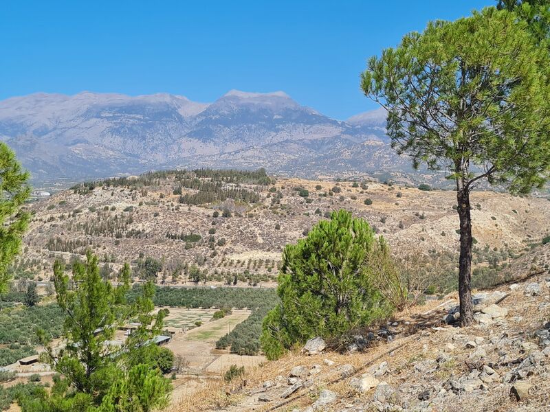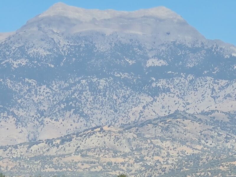 Blick von Phaistos hinauf zur Kamares-Höhle am Psiloritis